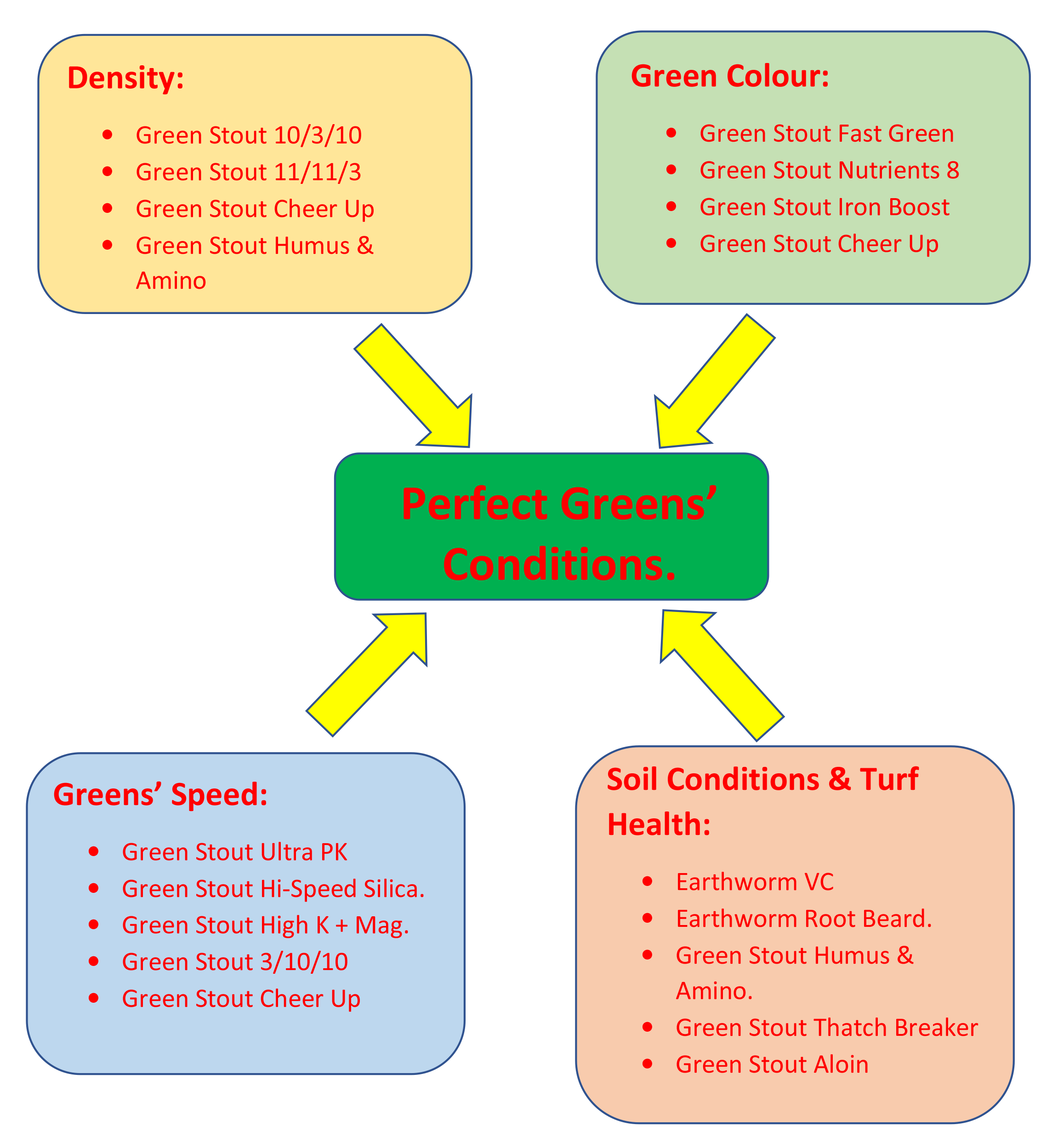Green Stout and Earthworm products are to be used to achieve the perfect condition of the greens.